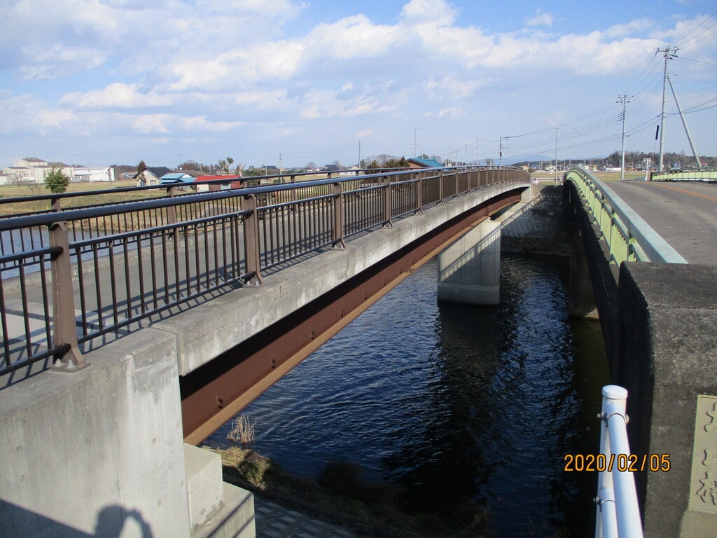 | コメント | 主要地方道栃木二宮線の歩道整備に当たり、田川を渡河する車道橋の上流に側道橋の設計を行った。 L=55.6m B=3.0m 上部工:鋼2径間連続非合成鈑桁橋 下部工:逆T式橋台 小判型壁式橋脚 基礎:場所打ち杭 |